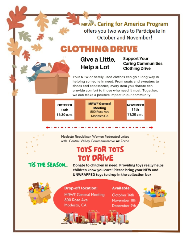 We meet on the 2nd Tuesday of each month at 11:30 am. Lunch is $26.00, and RSVP at 209-567-3399 one week prior to meeting is required. You can pay either below or the day of the meeting. A guest speaker is part of the program each month. The meeting is held at the Masonic Center of Modesto – 800 Rose Ave. 95350